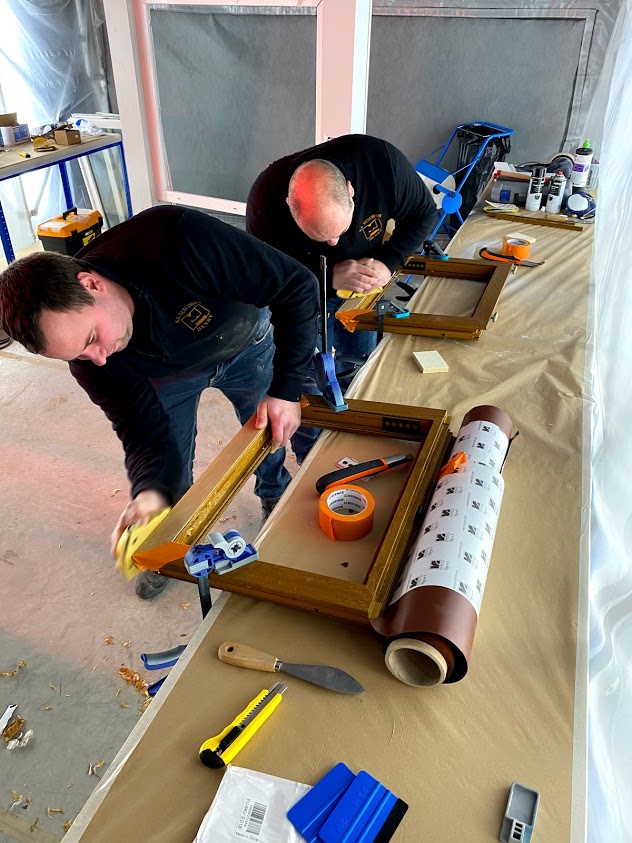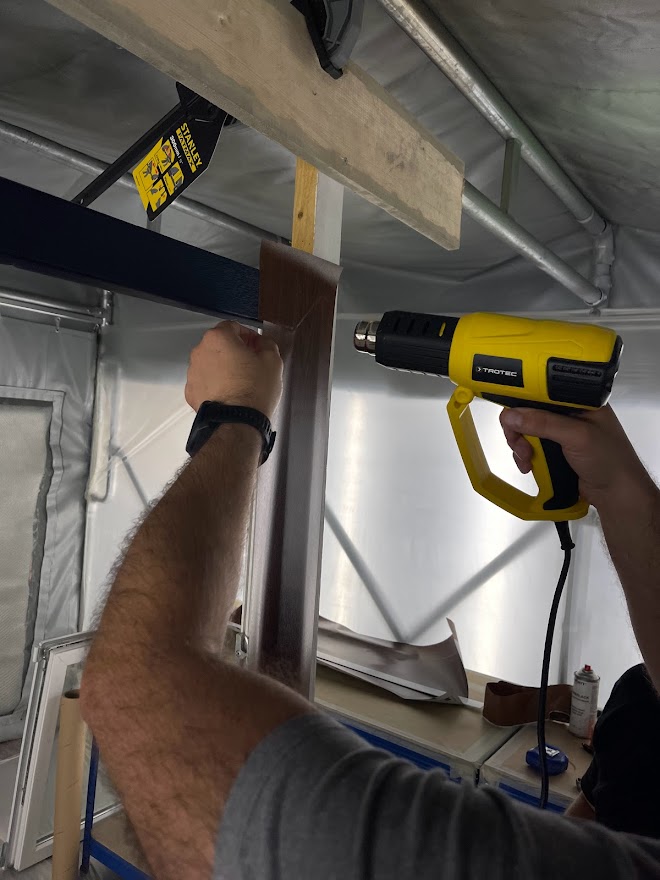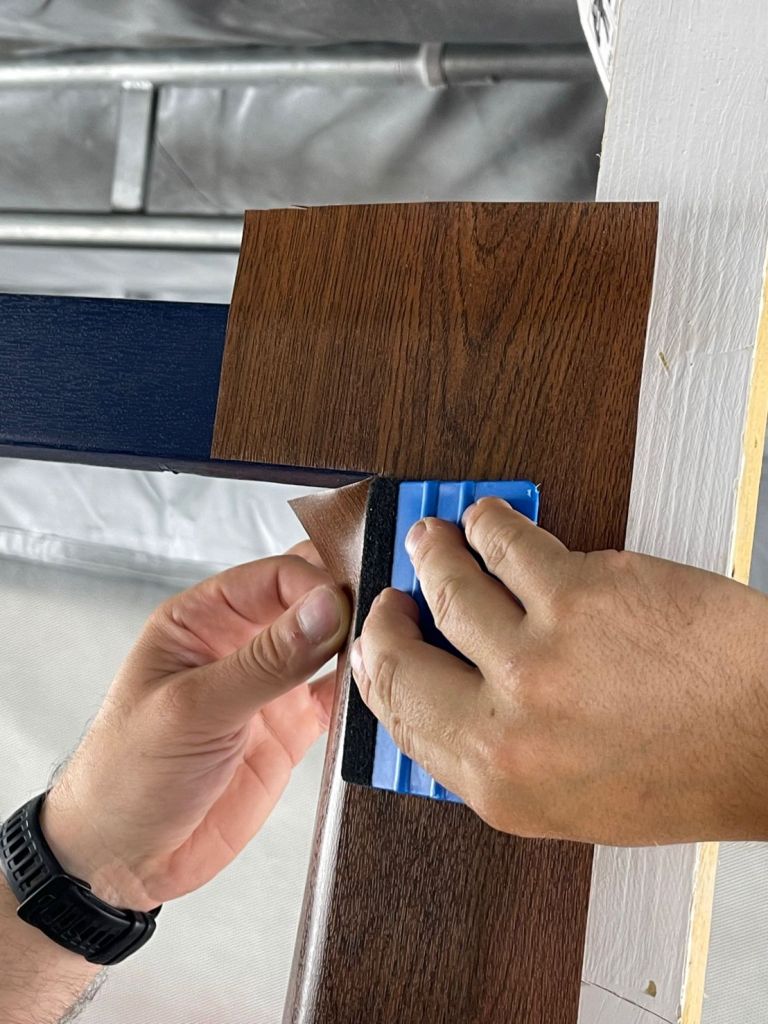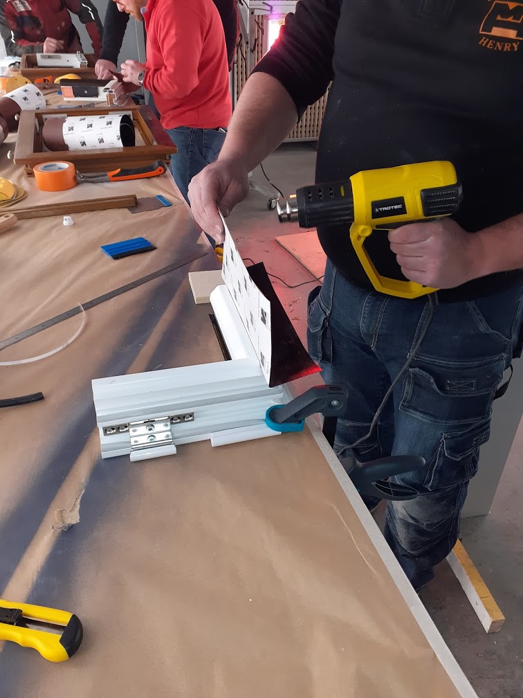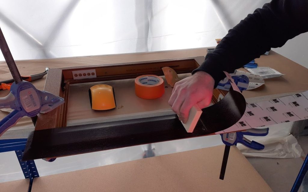 Pouvoir réparer des profilés de portes et fenêtre préalablement laminés avec du film type RENOLIT, afin d’éviter le remplacement de celles-ci.