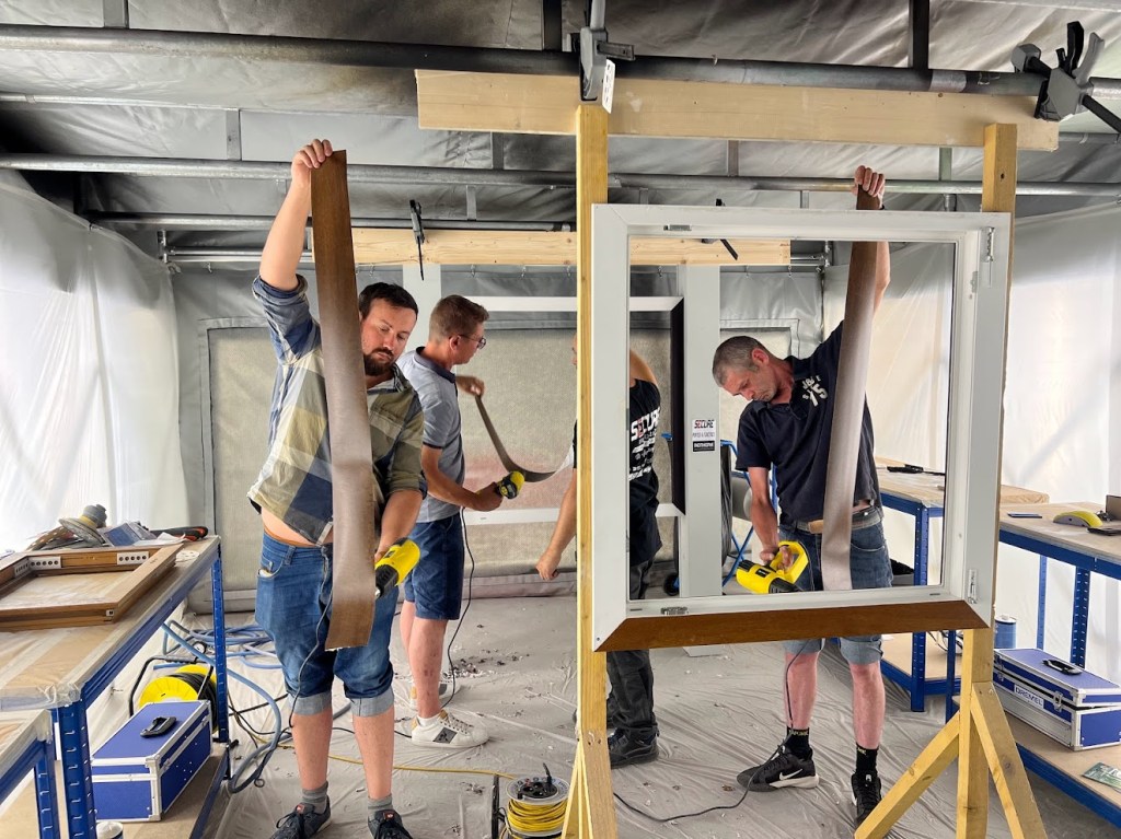 → Partie 1 : Démontage d’une menuiserie avec film pré-adhésivé → Partie 2 : Préparation de la menuiserie → Partie 3 : Mise en température, décollage et retrait des imperfections → Partie 4 : Remise de colle spécifique pour film pré-adhésivé → Partie 5 : Collage du film et remise en place de la menuiserie
