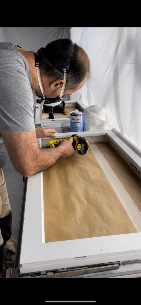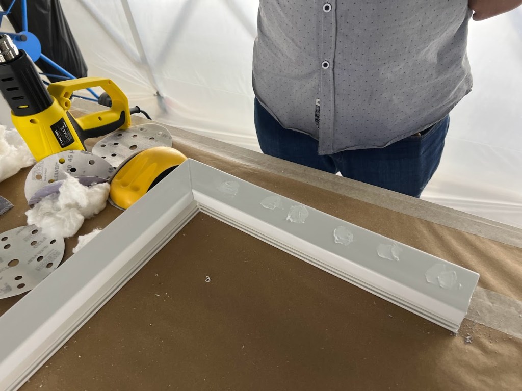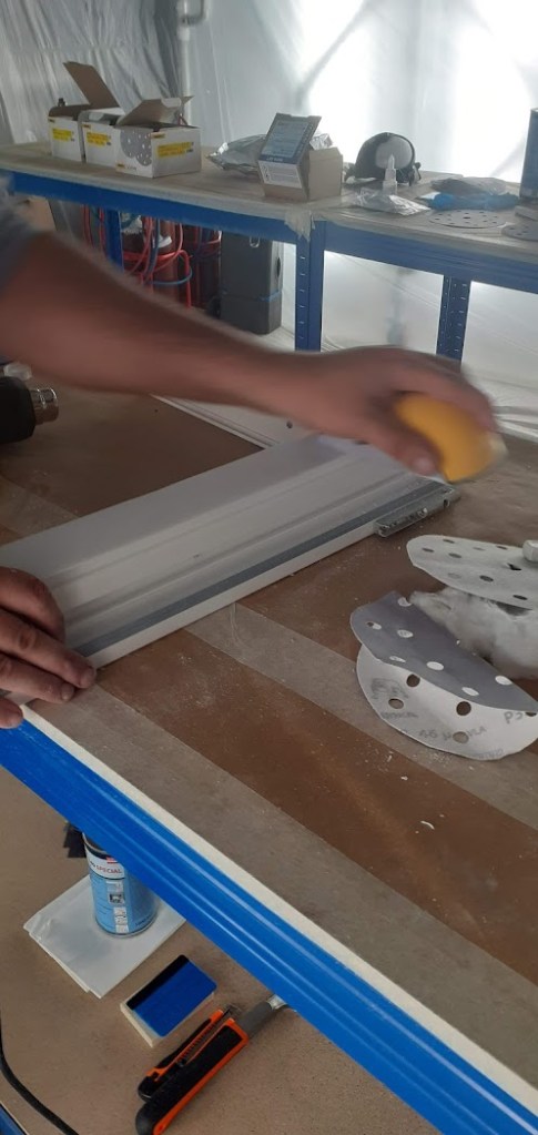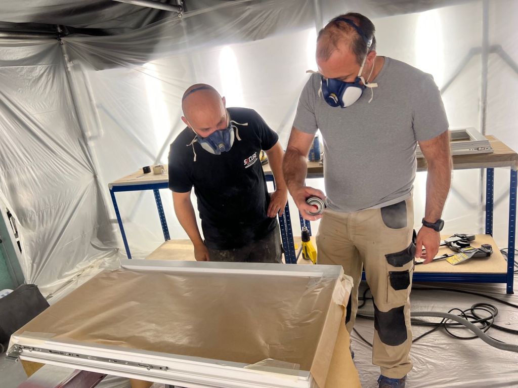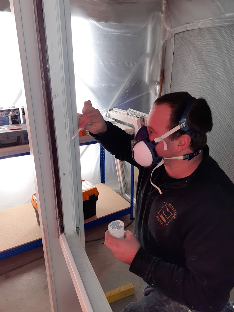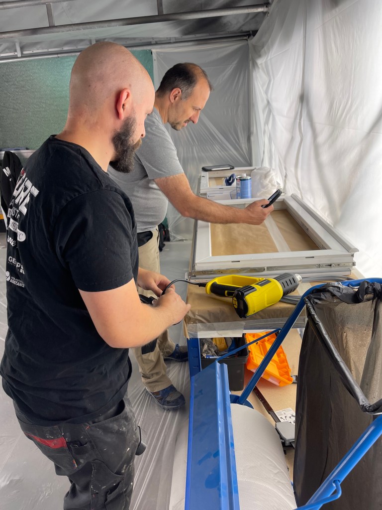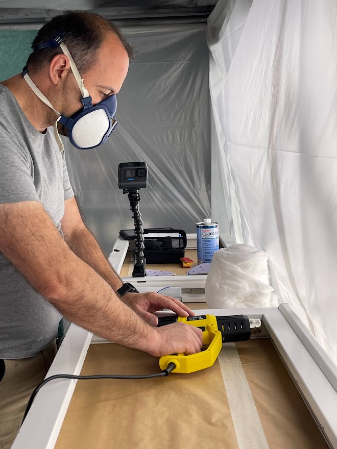 → Partie 1 : Démontage d’une menuiserie PVC → Partie 2 : Préparation de la menuiserie → Partie 3 : Ponçage, égrainage et redressage du PVC → Partie 4 : Remise de matière aux niveau des trous → Partie 5 : Nettoyage et blanchiment du PVC