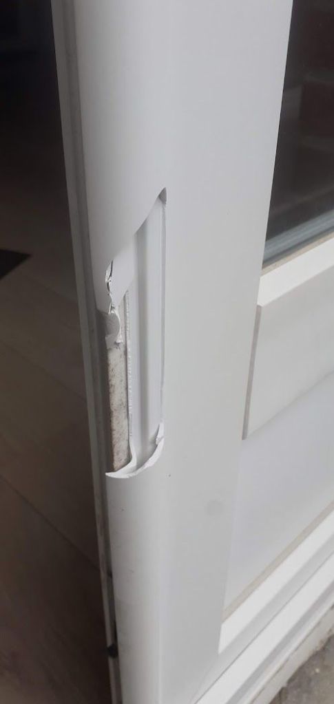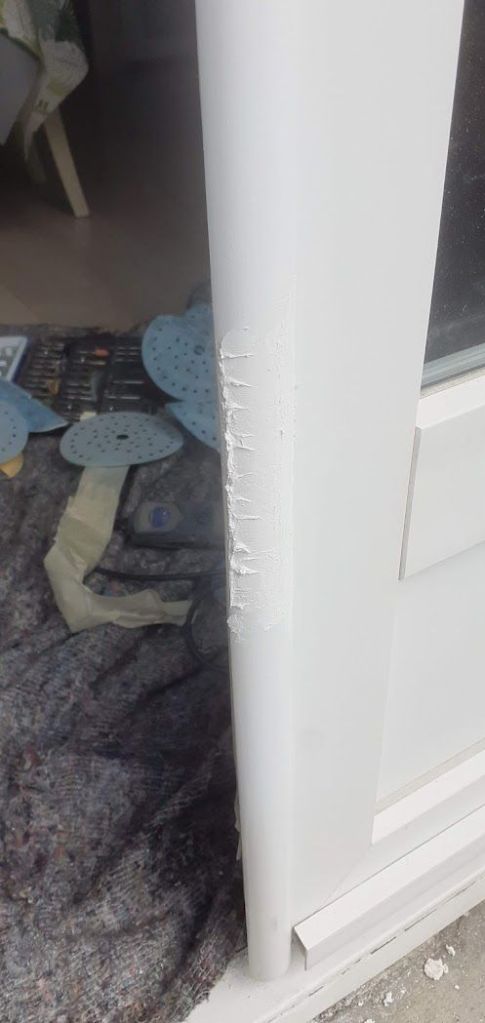 REPARATION PVC BLANC (coups de pesées et reconstitution de matière).